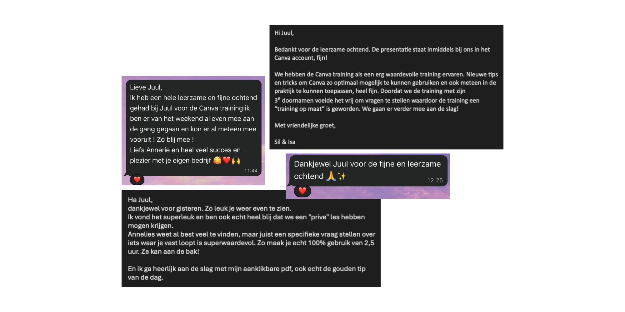 It's me - Juul! Sinds 2020 gebruik ik als content marketeer dagelijks Canva voor 30+ bedrijven. Omdat ik m'n enthousiasme over deze tool heel graag wil delen geef ik sinds 2023 Canva-workshops: in groepen, incompany en 1-op-1.